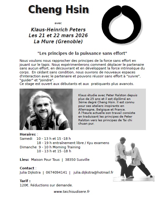 Je suis heureuse de vous annoncer que vous pouvez dès maintenant réserver votre week-end du 5 et 6 avril 2025 pour un stage 100 % Wudang avec Dominique Robin.